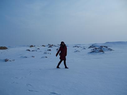2000年前の漢代の万里の長城跡にて、