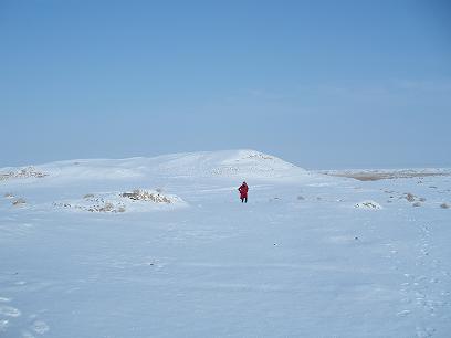 (左)小高い雪山を発見。
