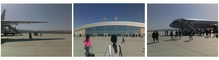 砂漠の真ん中に作ってみました的な敦煌空港。