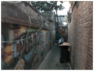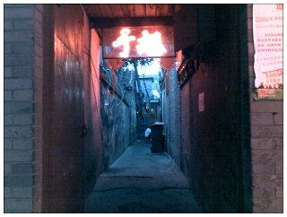 店と店の間に突如として現れる胡同の入り口。ささやかに、慎ましい看板ひとつ。