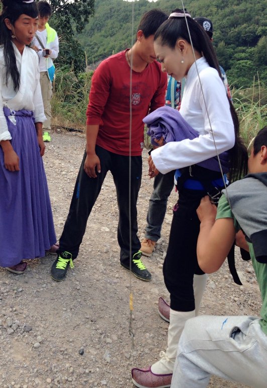 山ではワイヤーに吊られて空を飛び。